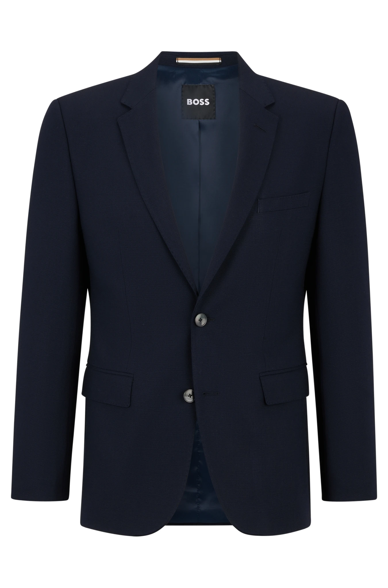Vielseitig kombinierbares BOSS Jackett. Der melierte Herren-Einreiher aus einem Woll-Mix mit Elasthan-Anteil besitzt ein durchgehendes Innenfutter aus einem seidigen Material-Mix und verspricht optimale Bewegungsfreiheit. Für unsere RESPONSIBLE Produkte verwenden wir immer mindestens 60 % nachhaltigere Rohmaterialien. Dieses Produkt besteht aus mindestens 60 % nachhaltiger gewonnener und zertifizierter Wolle. Nachhaltigere Wolle bedeutet für HUGO BOSS, dass das Material die Standards der Fünf Freiheiten für das Tierwohl einhält.
