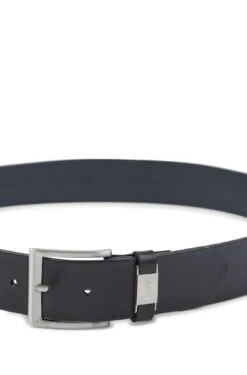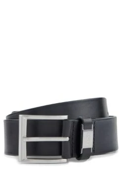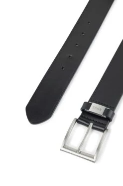 Eleganter BOSS Gürtel mit 4,0 Zentimetern Breite. Das Herren-Accessoire wird mit einer silberfarbenen Dornschließe geschlossen. Das italienische Leder mit pflanzlich gegerbtem Finish weist eine charaktervolle Patina auf. Die Lederschlaufe ist für einen charakteristischen Touch mit einem metallenen Logo-Besatz versehen. Für eine optimale Passform sollte der Gürtel eine Größe größer als dein Taillenumfang sein.