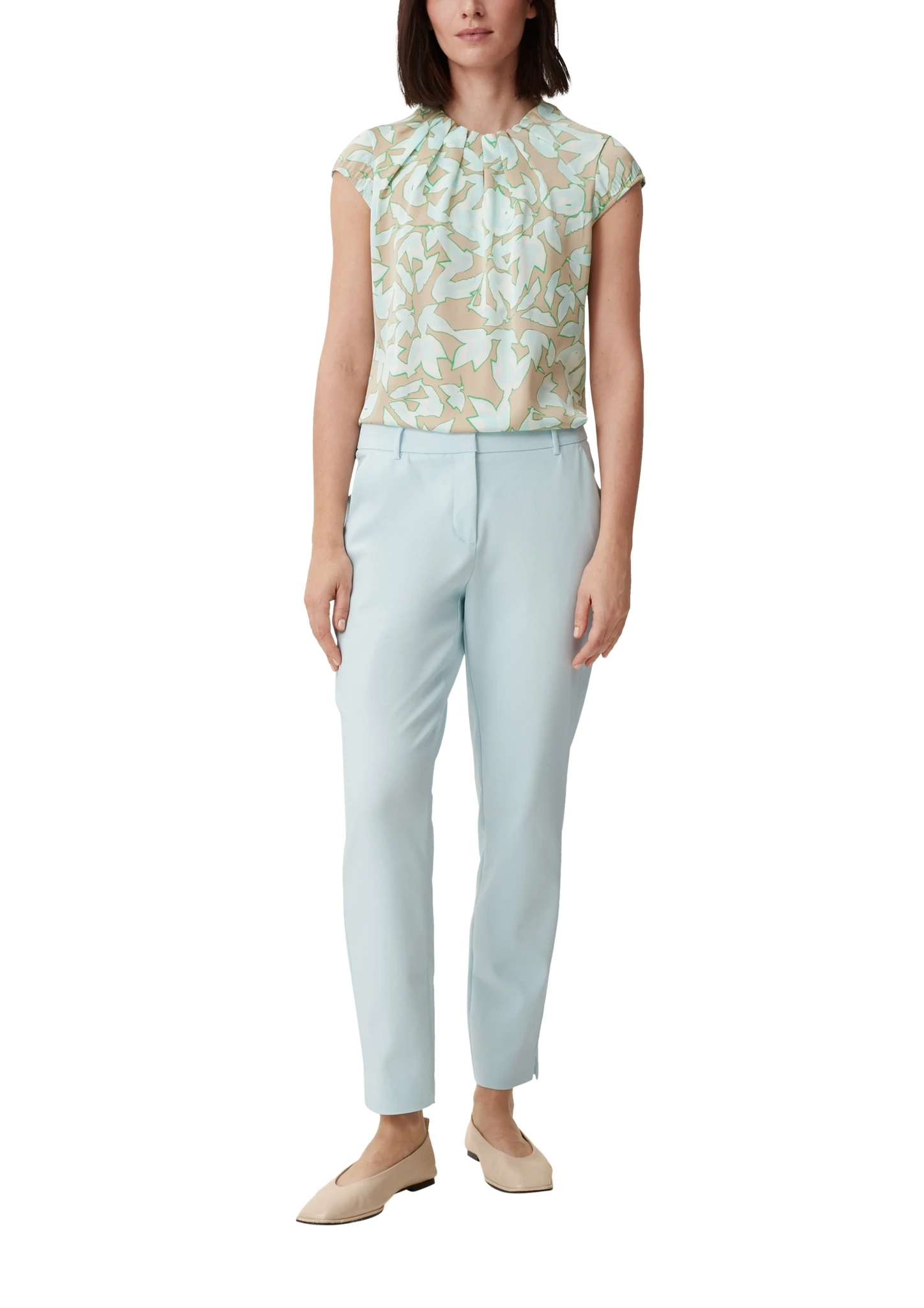 - Rundhalsausschnitt mit dezenten Raffungen