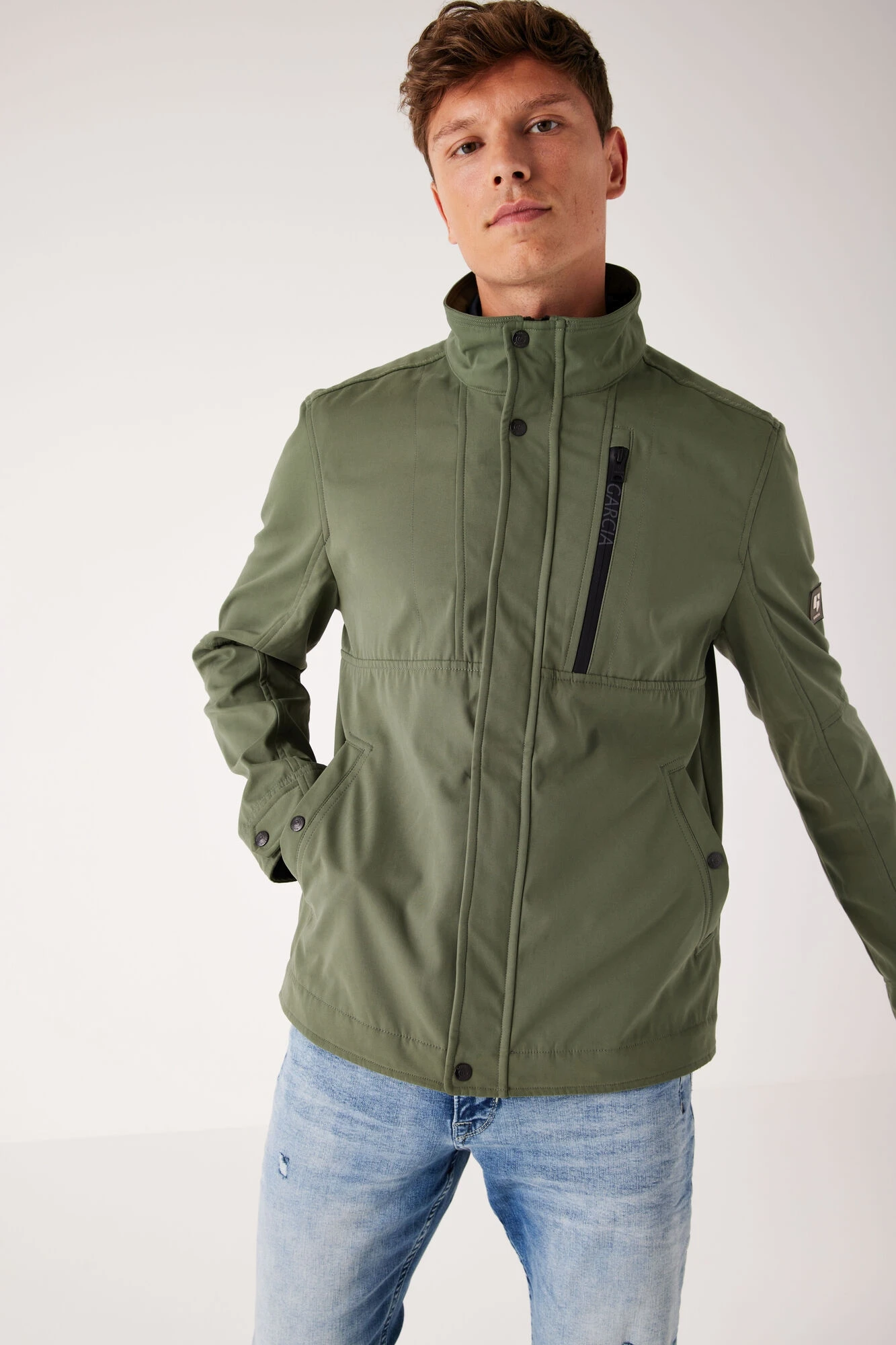 - Ärmel mit Ärmelgürtel mit Druckknopfverschluss