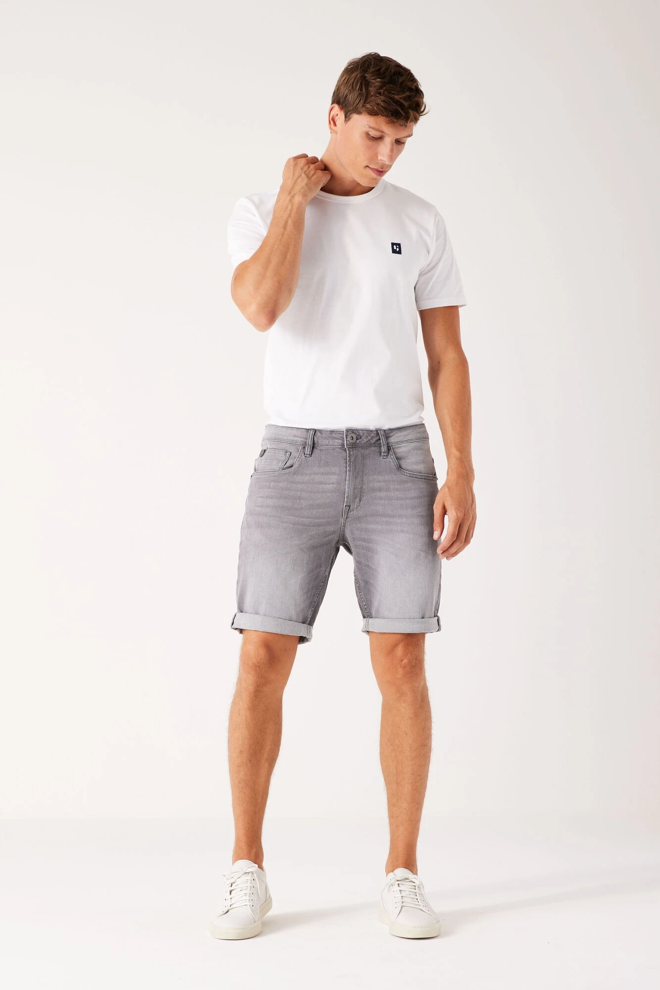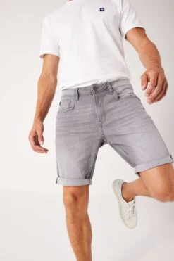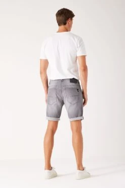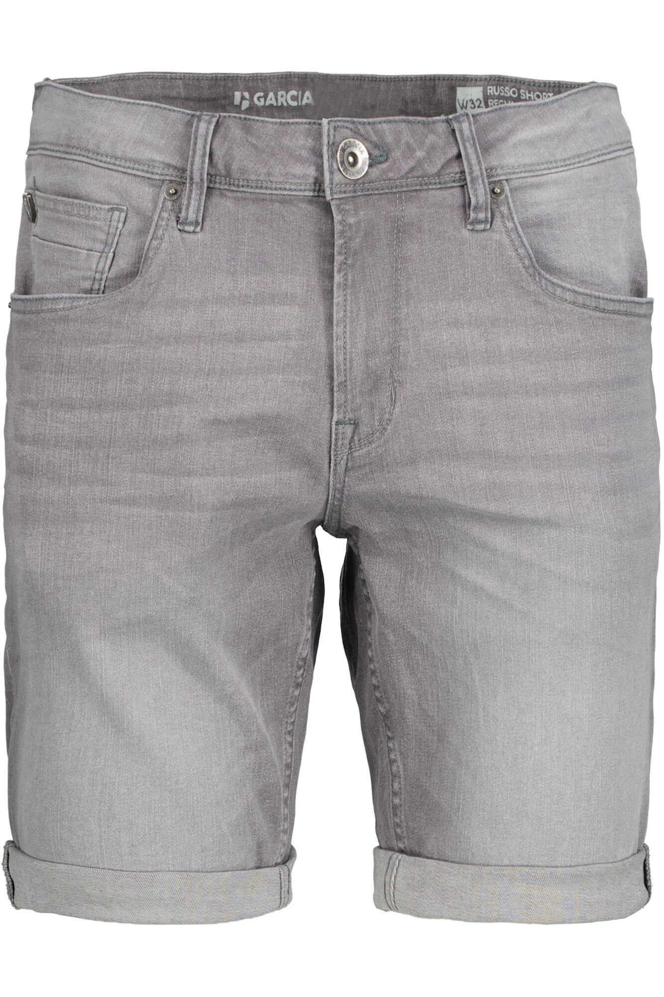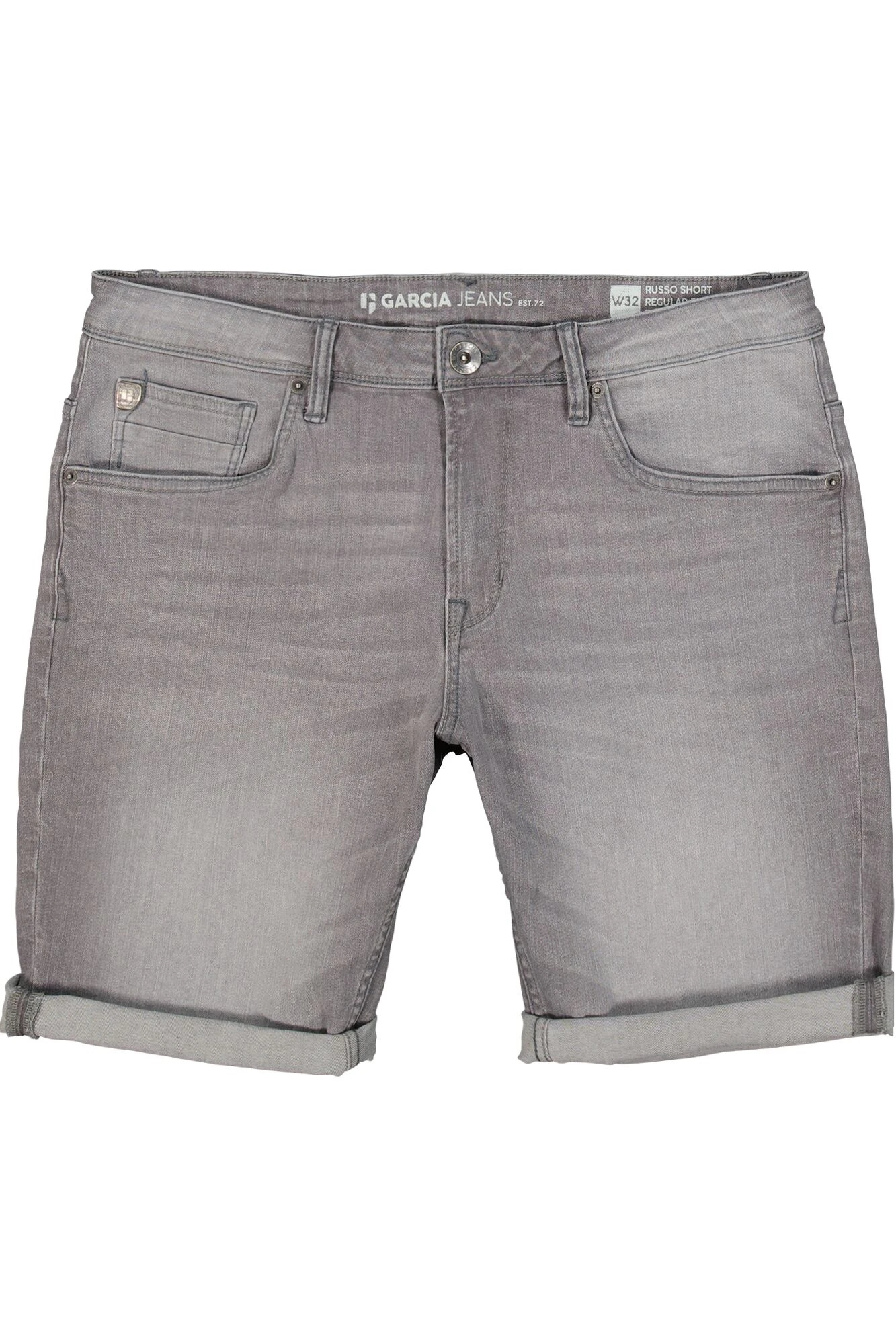 Die Russo 615 sind Denim-Shorts mit einer Regular-Fit-Passform und aufgerollten Hosenbeinen, die über dem Knie enden. Die Shorts sind ein 5-Pocket-Modell und schließen mit einem Knopf- und Reißverschluss.