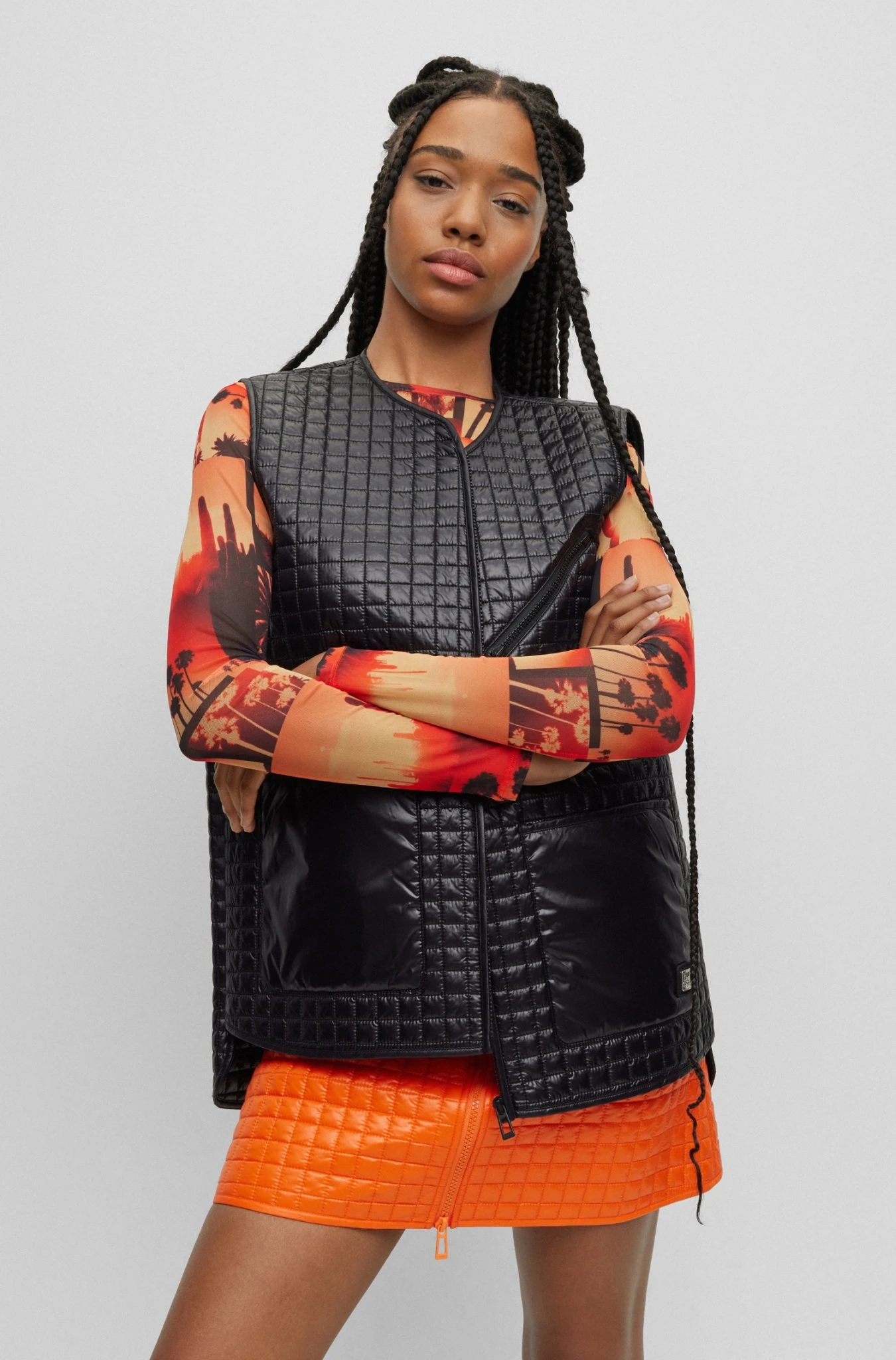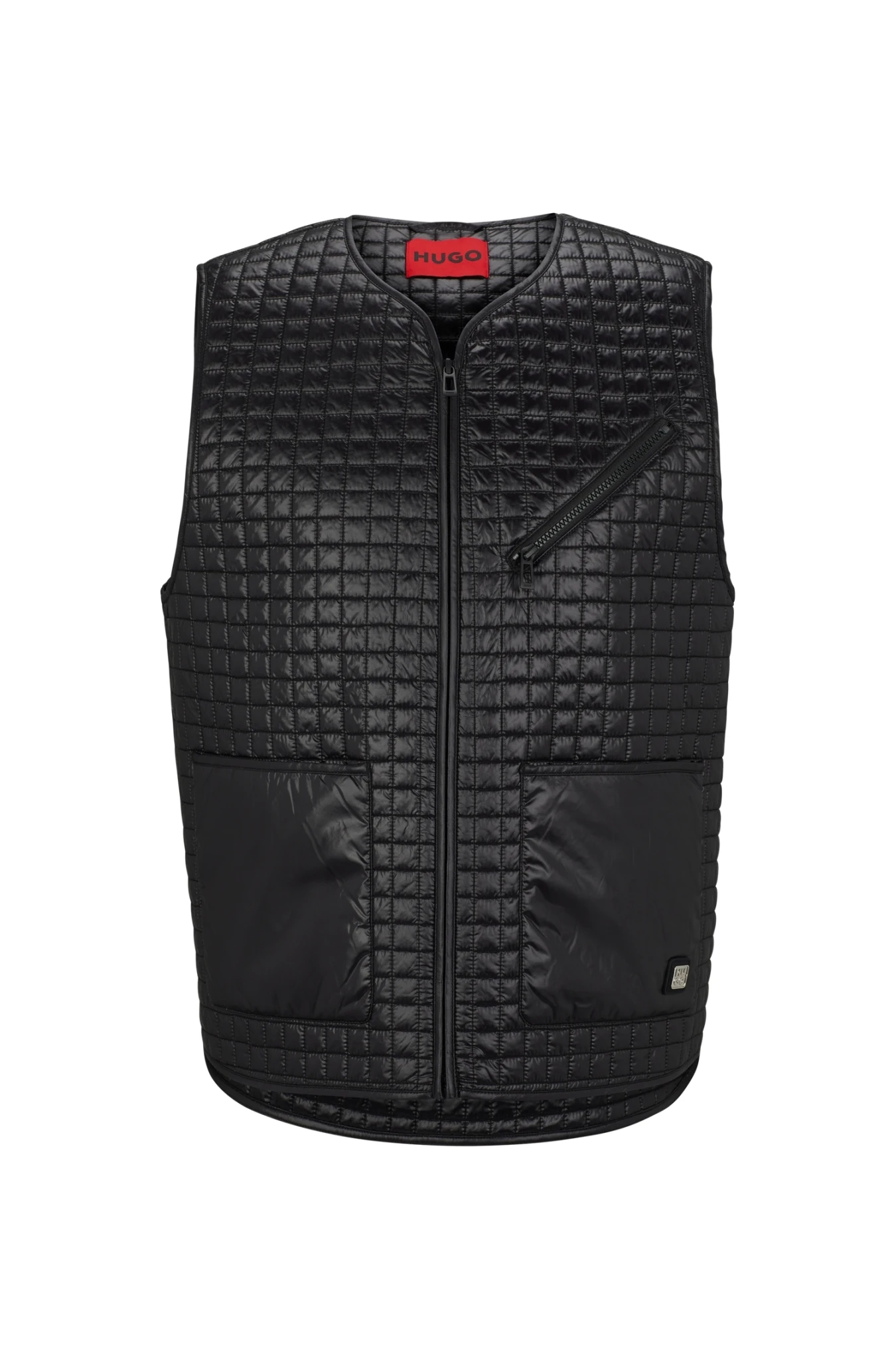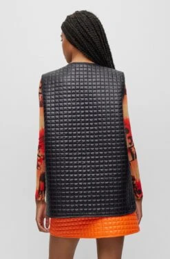 Locker geschnittene HUGO Weste aus einem schimmernden Material-Mix mit Absteppungen, aufgesetzten Taschen und Stack-Logo.