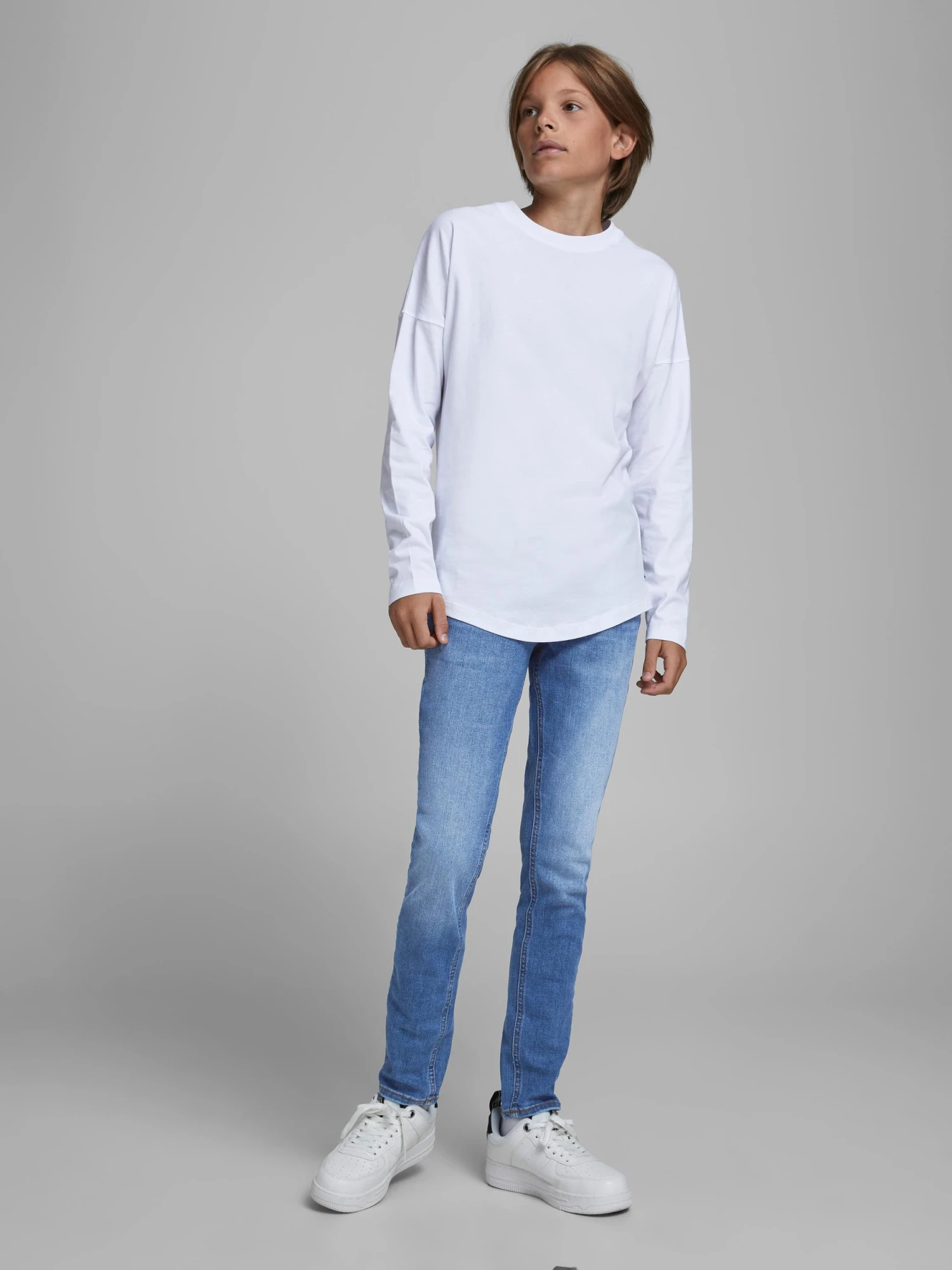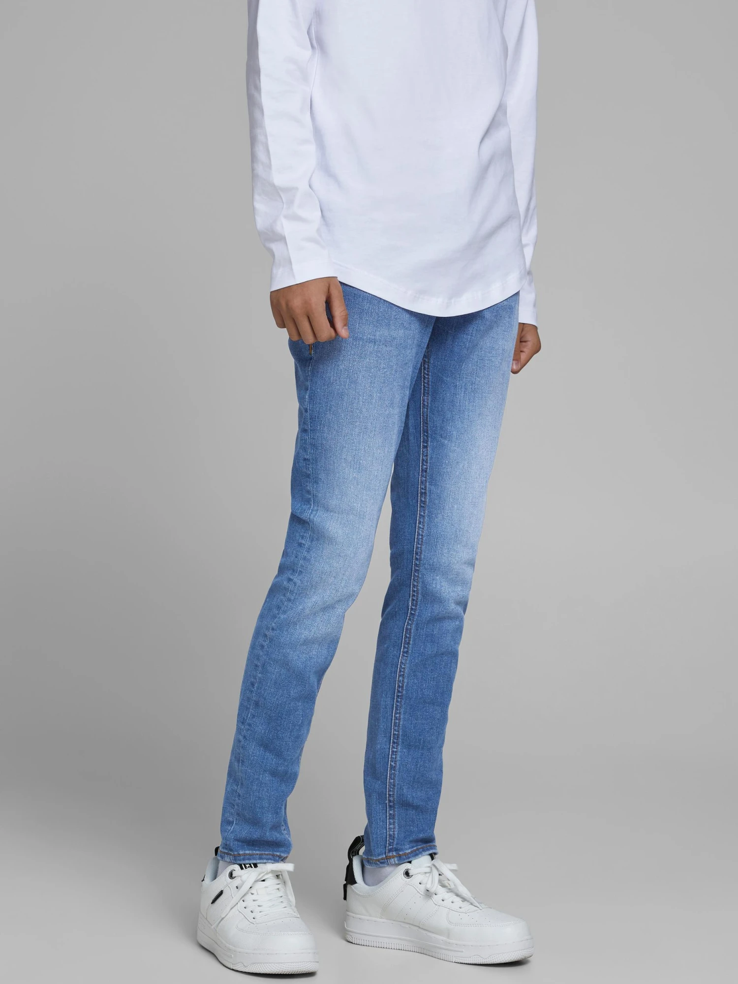 Die klassische und unkomplizierte Fünf-Taschen-Jeans von JACK & JONES KIDS für Jungen ist eng passend.