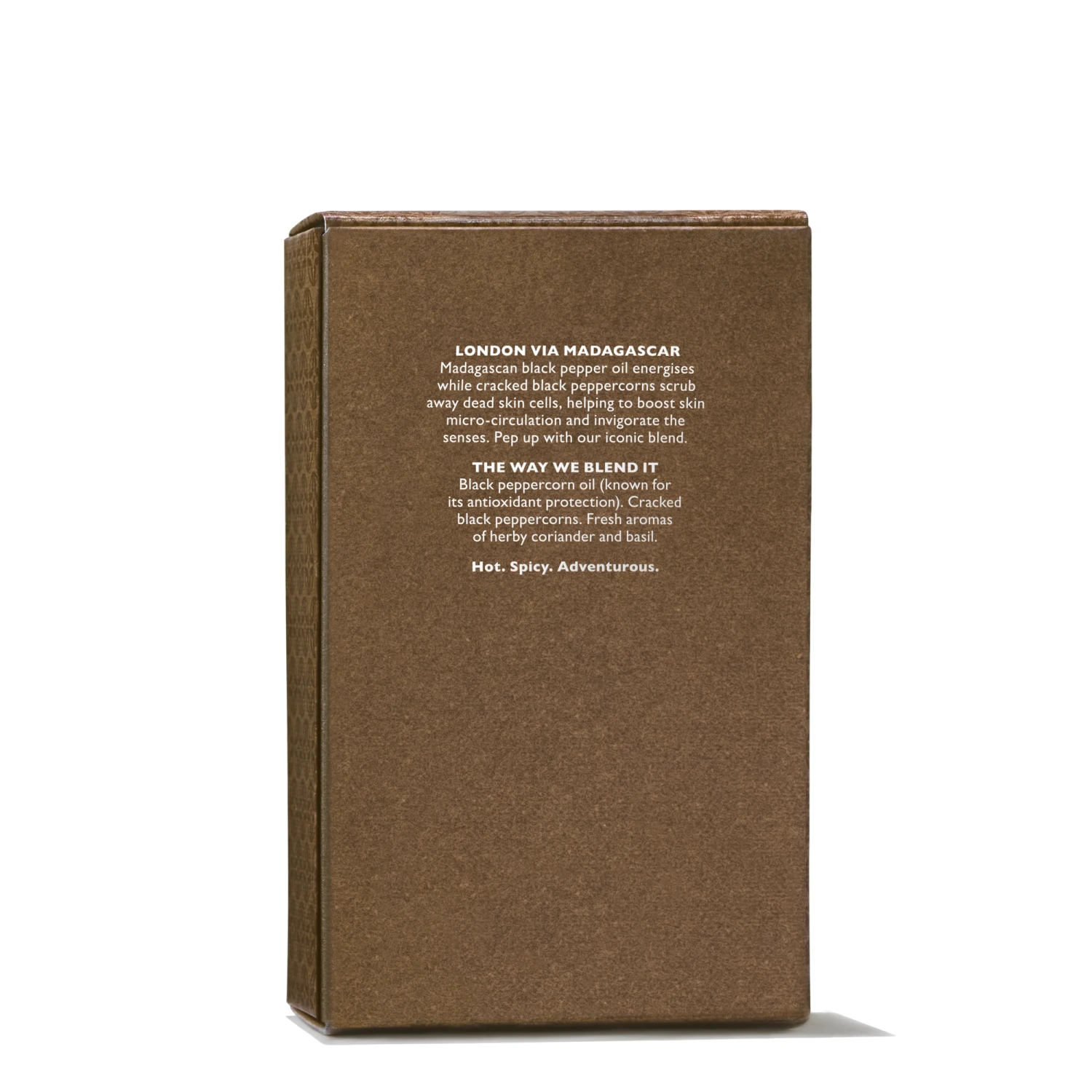 Ein feuchtigkeitsspendendes Körperpeeling mit schwarzen Pfefferkörnern für gesunde Haut und Aromen von kräuterartigem Basilikum sowie frisch duftendem Koriander.