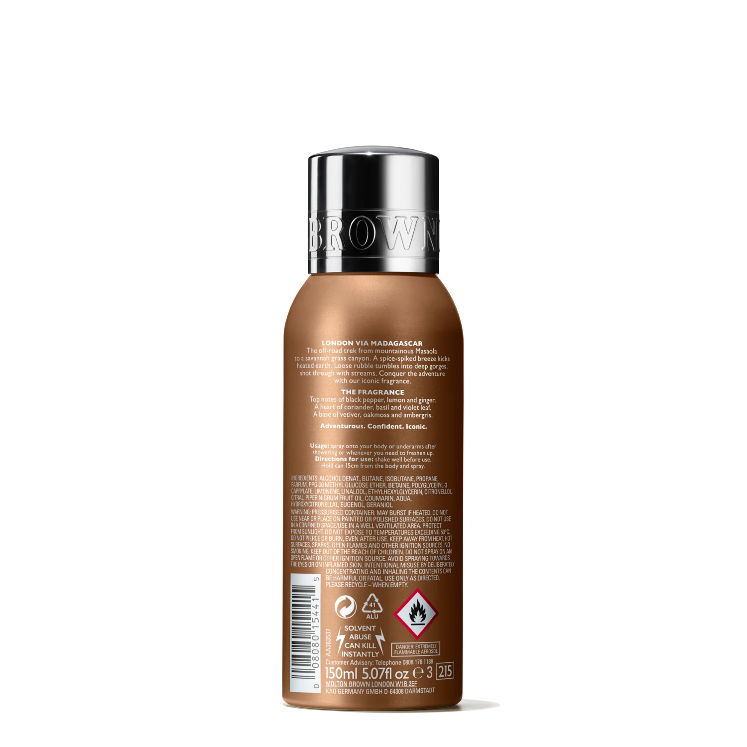 Geländetour vom gebirgigen Masoala zu grünen Savannen und Canyons. Würzige Brise trifft auf erhitzte Erde. Lockeres Felsgeröll stürzt in tiefe Schluchten, durch die reißende Flüsse schießen. Erleben Sie das Abenteuer mit unseren unverkennbaren Düften.