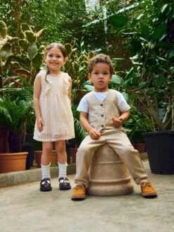 Erlebe Licht, Leben und Natur in fröhlichen Frühlingsstyles, die Spaß und Farbe in das Outfit deines Kindes bringen. Webware verfügt über ein markantes Gittermuster und eine fein strukturierte Oberfläche, die für einen klaren und klassischen Look sorgt.