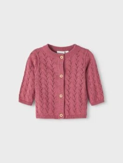 Bring Licht und Farbe in die Garderobe deines Kindes mit tollen Frühjahrs- und Sommerstyles, die für Bewegungsfreiheit und einen stylishen Look sorgen. Pointelle-Strick hat ein Lochmuster und ein geometrisches Design für einen eleganten Look.- Detailart : Cardigan- Verschluss/Hosenschlitz : Knopfverschluss- Bündchenart : Gerippte Ärmelbündchen- Stoff : Pointelle-Strick- AUSSCHNITT : Rundhalsausschnitt- ÄRMEL : Lange Ärmel (L/S)