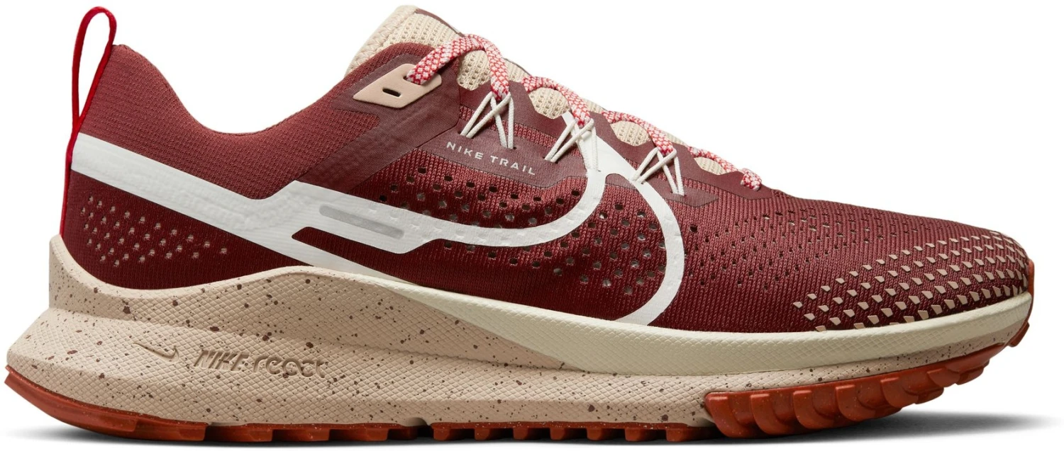 Laufen ist dein tägliches Ritual und bringt dich von der Straße bis zum Trail, während du neue Abenteuer und Ziele suchst. Der Nike React Pegasus Trail 4 bringt dich mit seinem stützenden, federnden Tragegefühl hin und wieder zurück. Die Traktion unter dem Fuß eignet sich für felsiges Terrain und sorgt trotzdem für ein geschmeidiges Laufgefühl auf der Straße. Der Mittelfuß-Halt wird von der Schnürung gesteuert, damit du die richtige Passform und das Tragegefühl findest. Dein vertrautes Arbeitspferd mit Flügeln ist bereit für eine Offroad-Reise, Zeit zum Abheben.