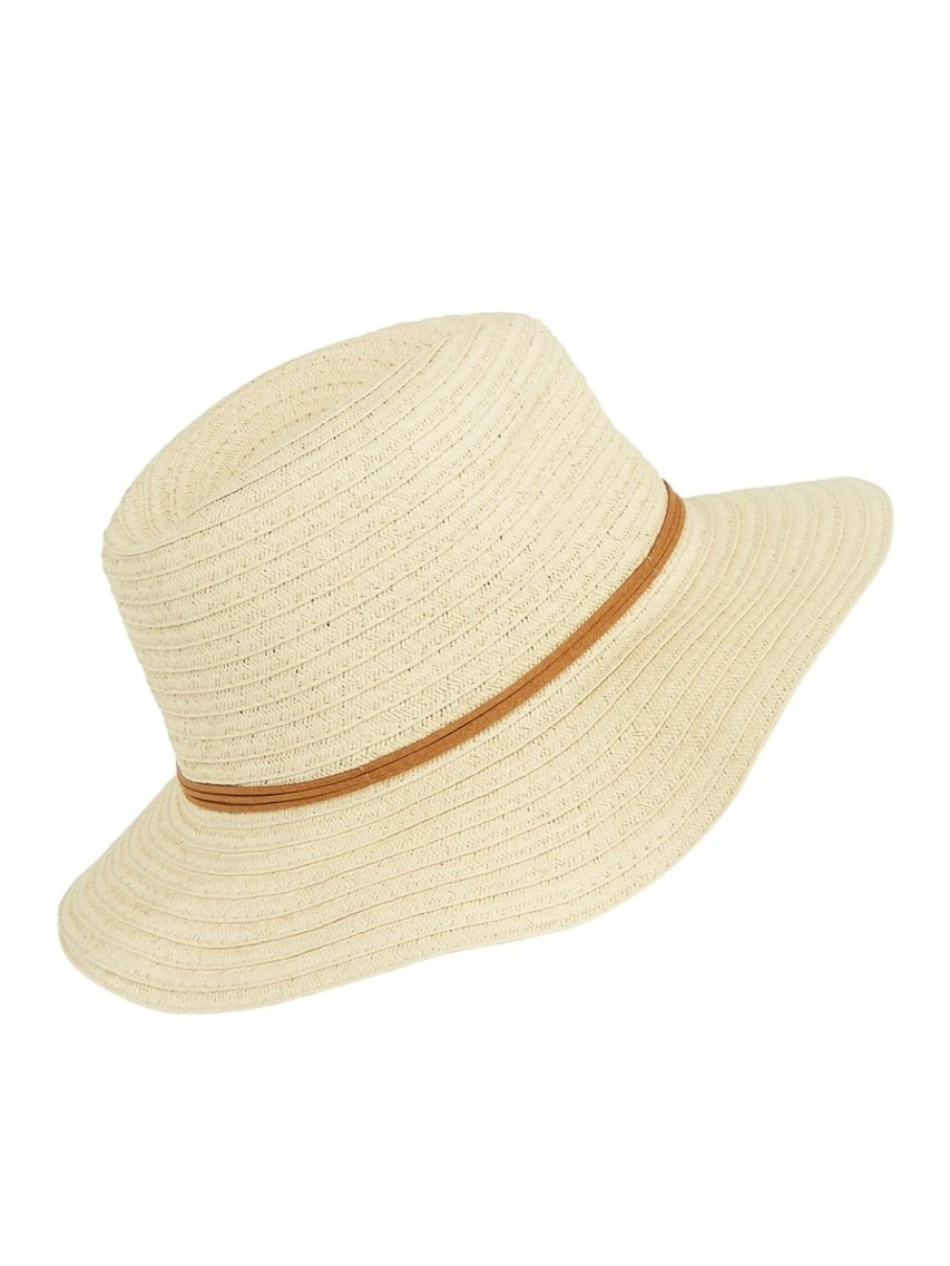 Dieser schicke Sommerhut ist aus 100 % Papierstroh hergestellt