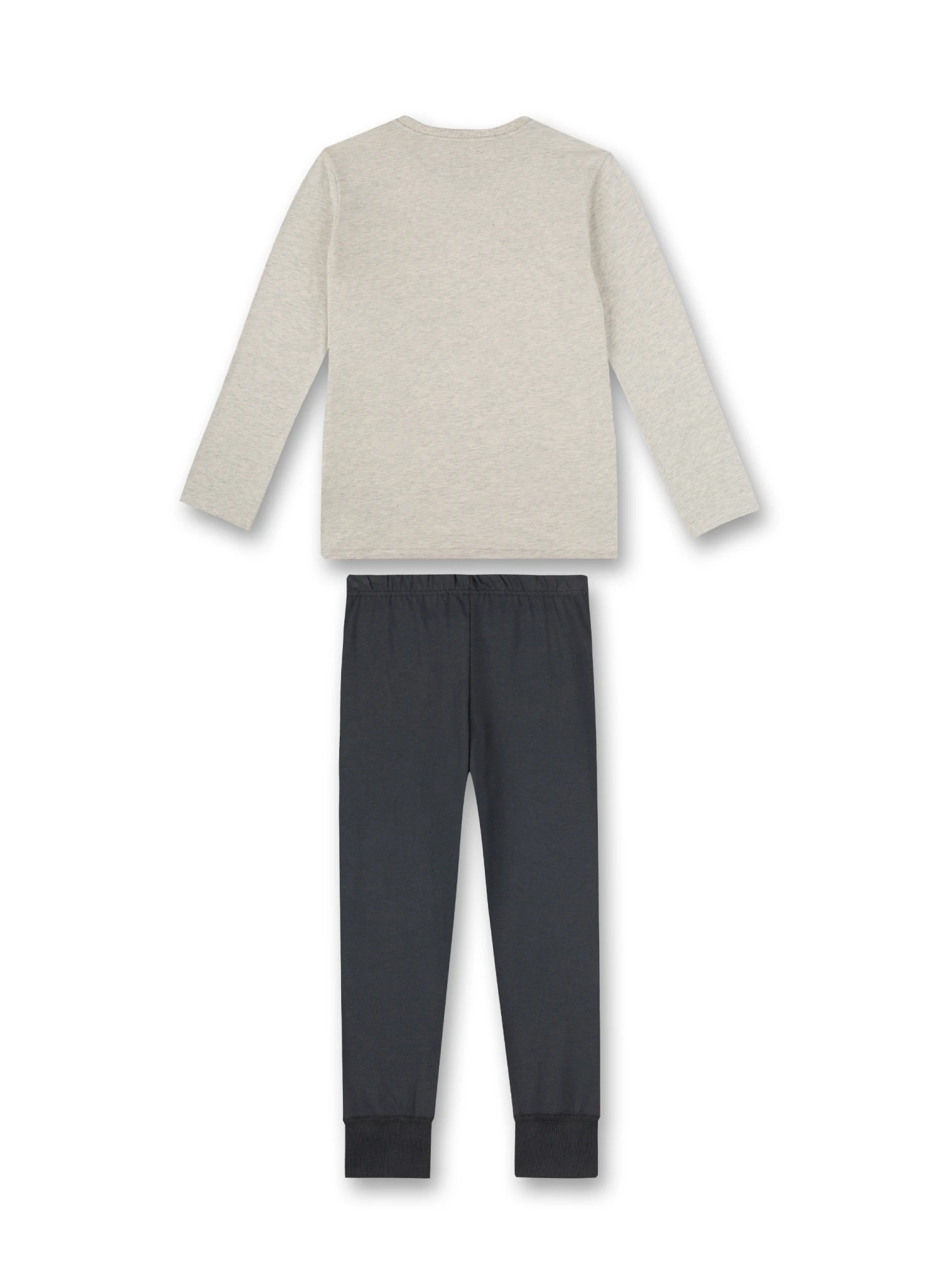 Jungen-Schlafanzug in Beigemelange von Sanetta mit einem trendig gestalteten Wordingprint.