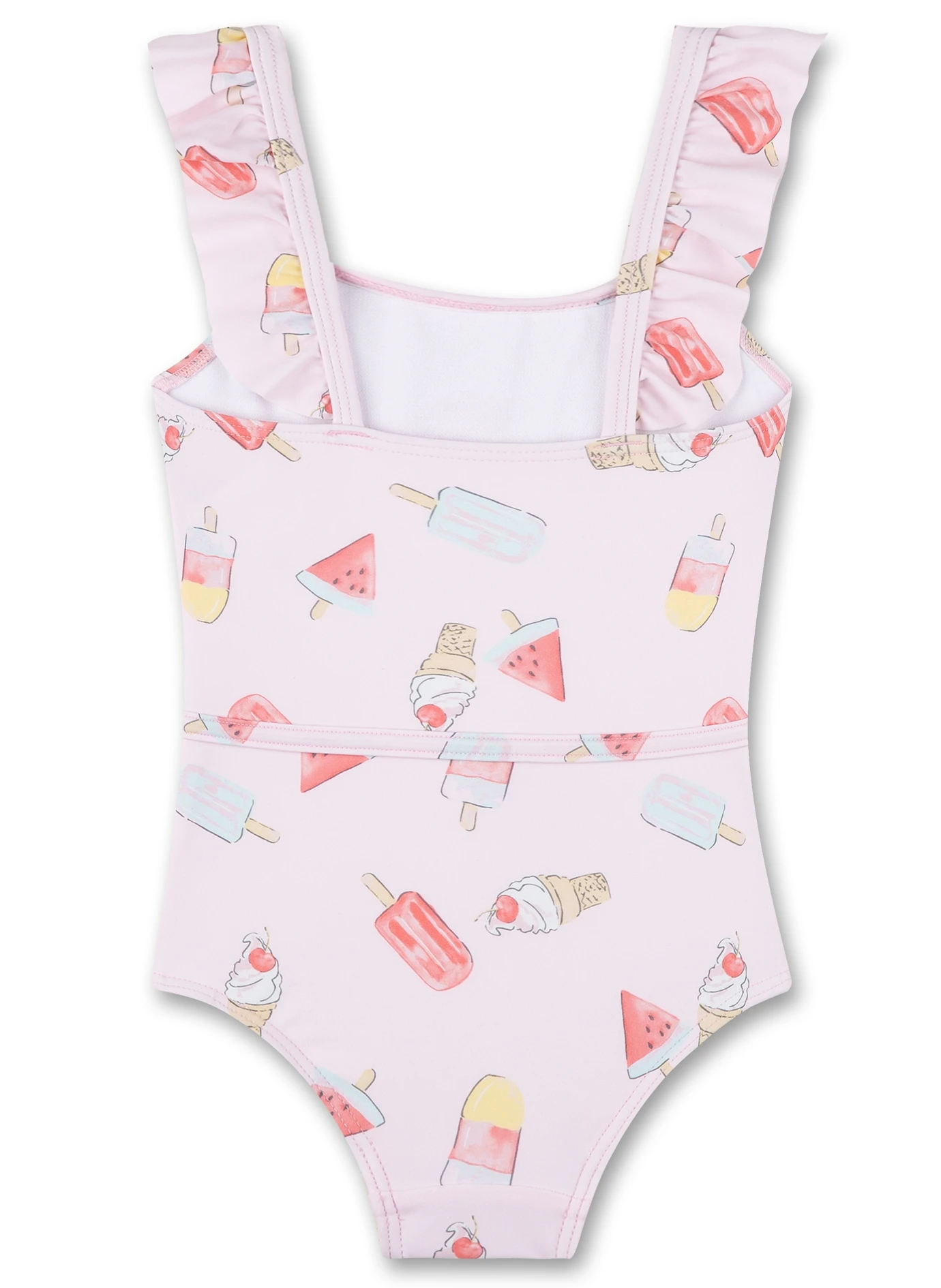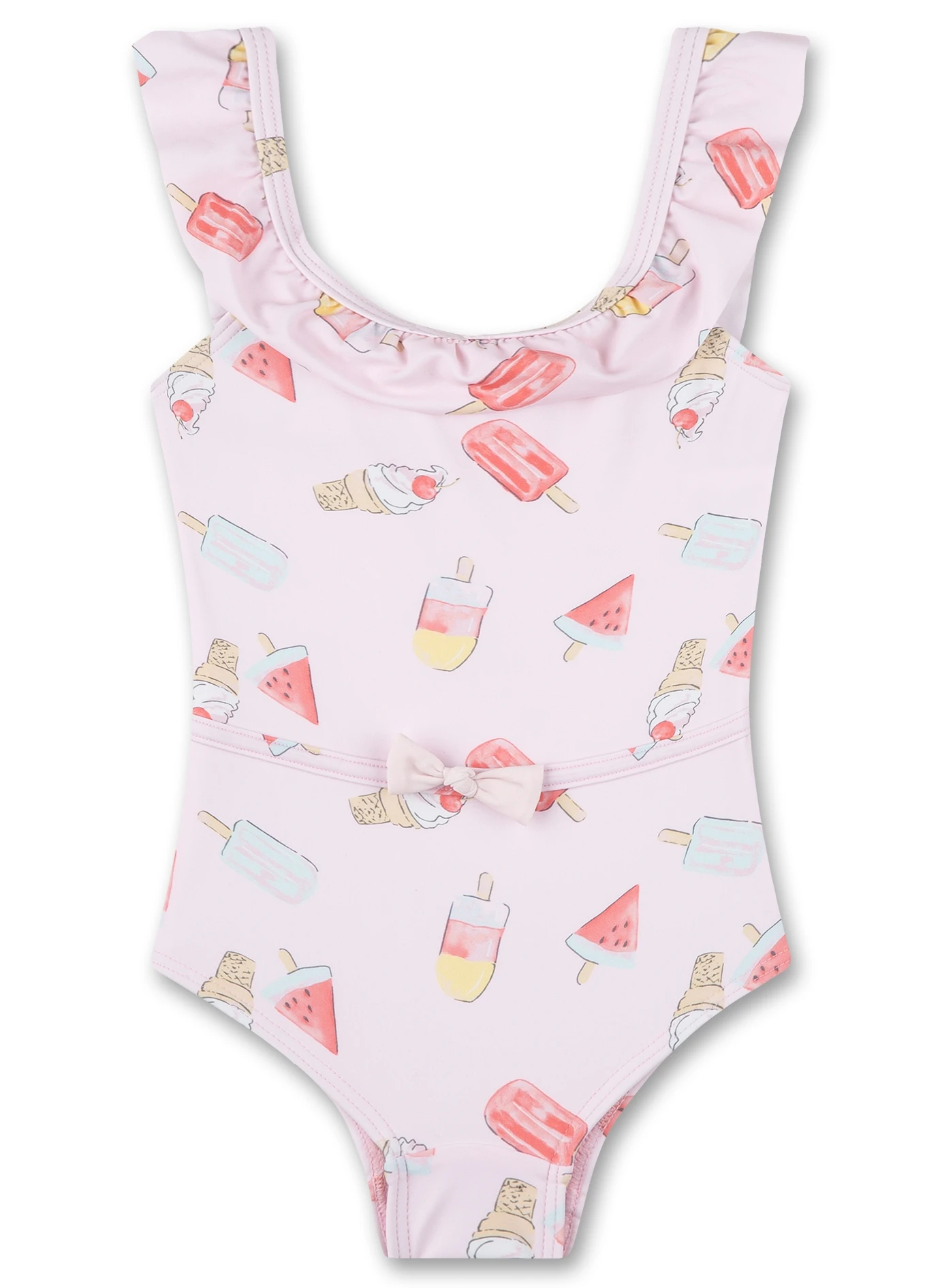Gerüschter Badeanzug mit einem heiteren Eis-Allover von Sanetta.