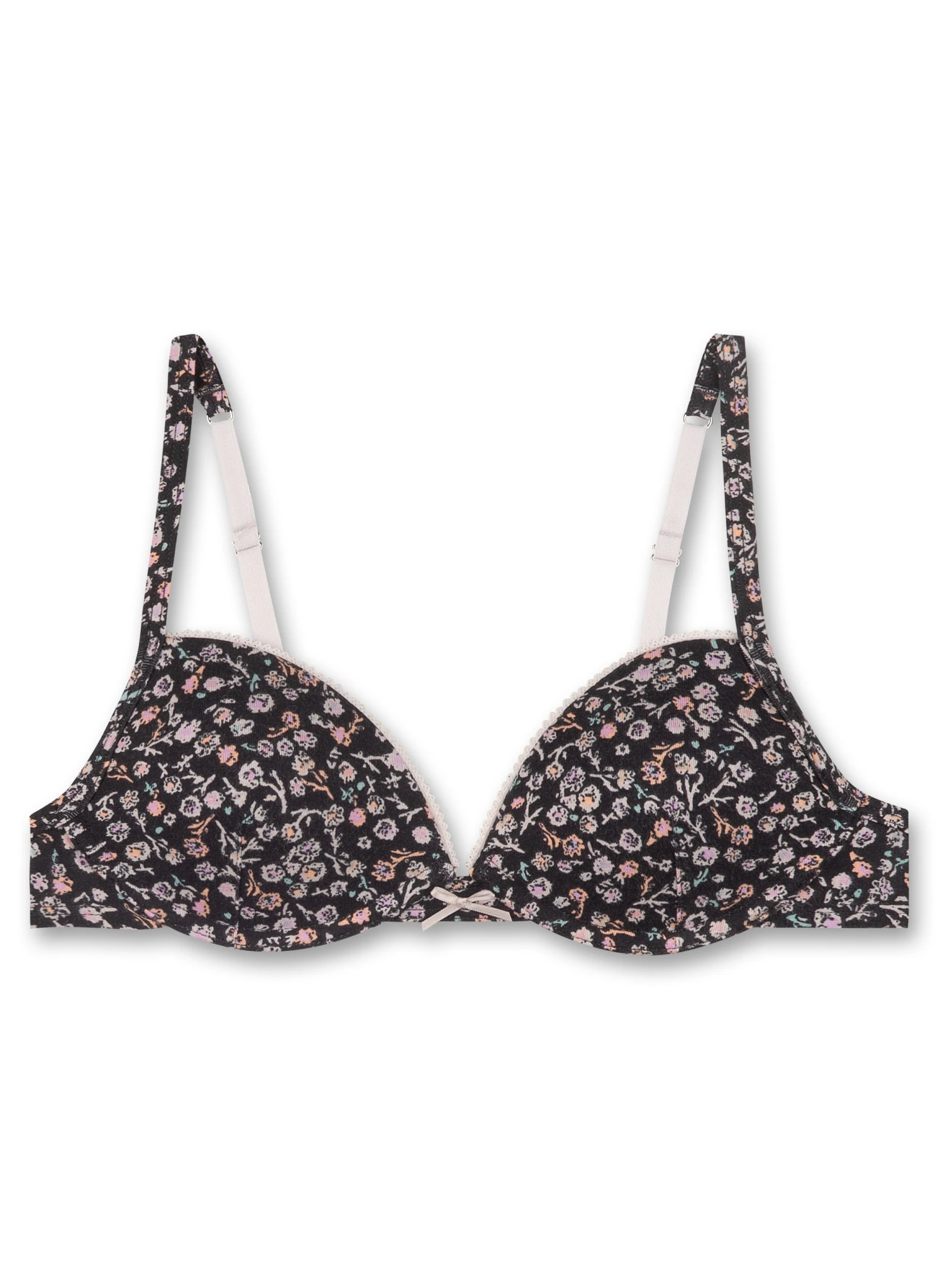 Soft-Cup Bra für Mädchen in Dunkelgrau mit einem romantischen floralen Alloverprint und hochwertigen Details.