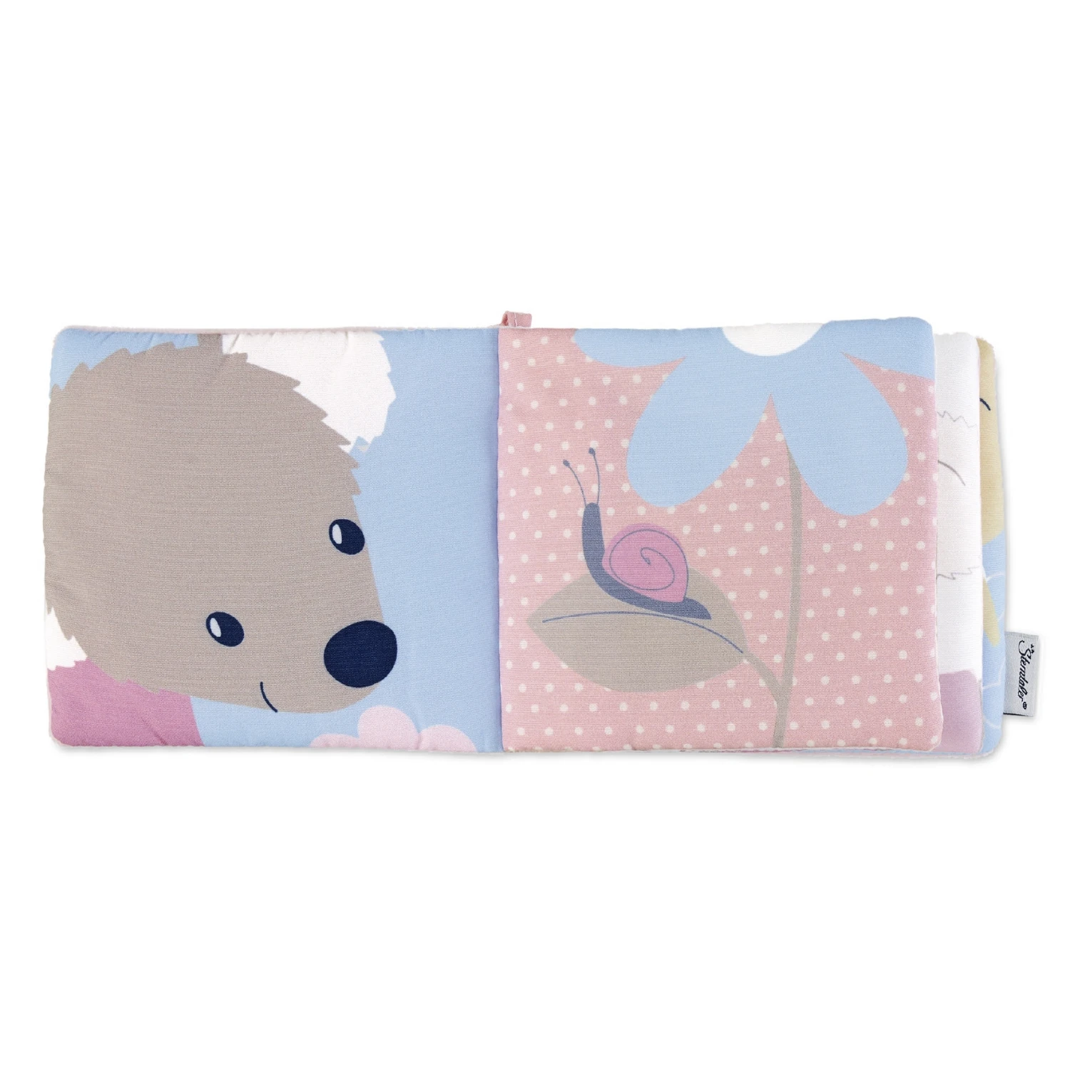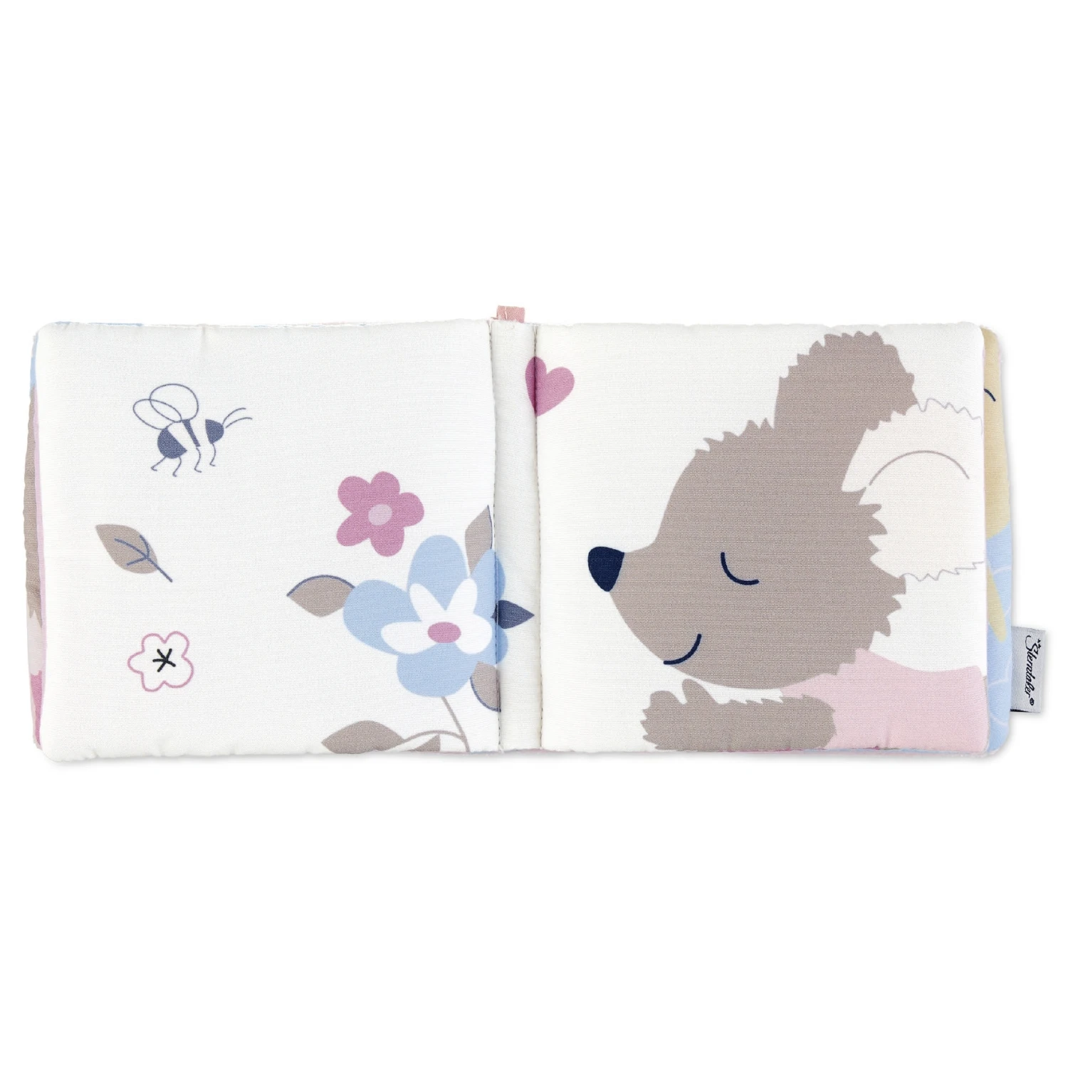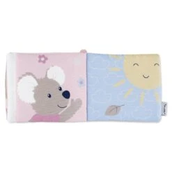 Mit dem Bändchen kann das weiche Stoffbuch am Kinderwagen oder an der Babyschale befestigt werden. Die 8 Seiten können gegriffen, geblättert und geknickt werden, während die bunten Motive bestaunt werden. Außerdem hat das Buch coole Effekte, die durch knistern und quietschen die Neugier wecken.